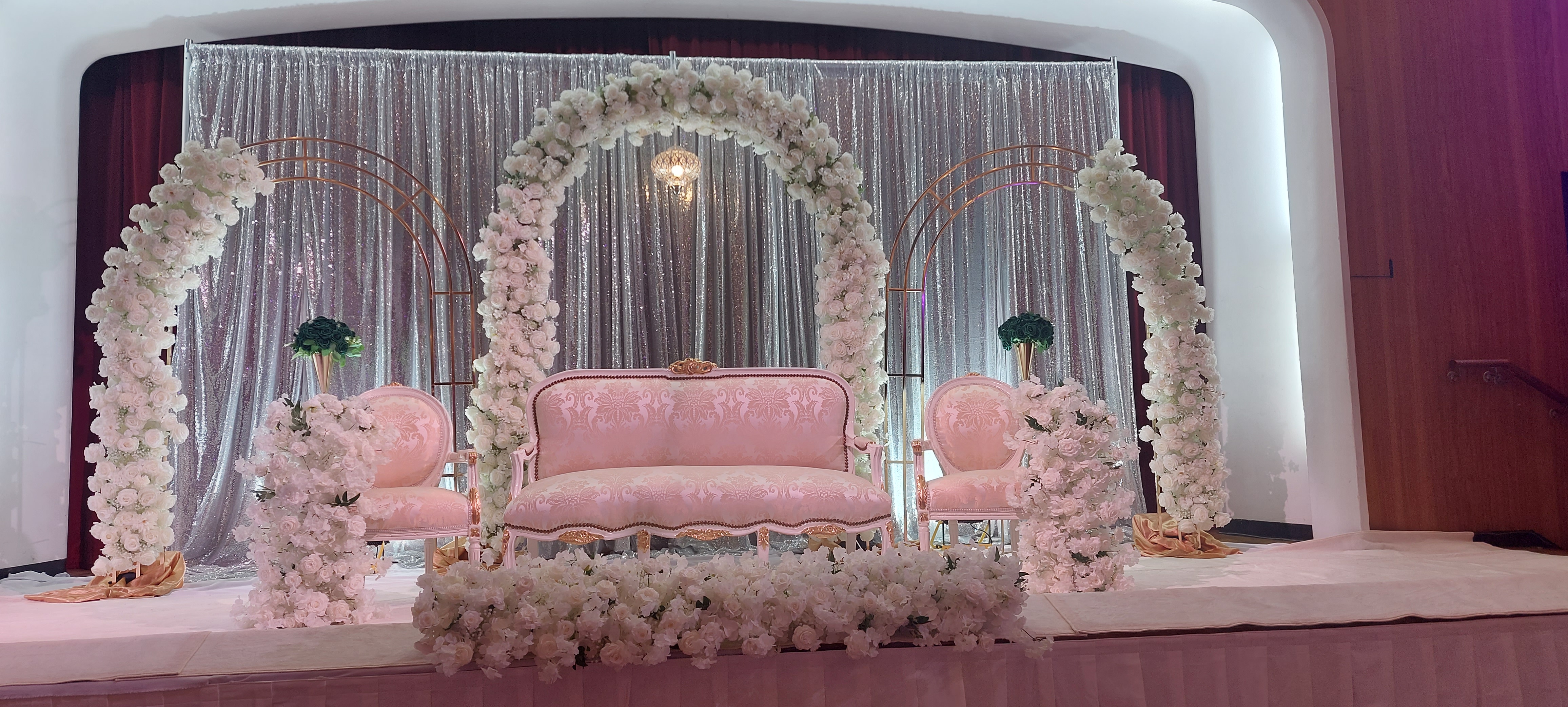 “The wedding day stage decoration was simply mesmerizing! Every detail, from the elegant drapery to the stunning floral arrangements, was thoughtfully crafted to create a dreamy and romantic atmosphere. The combination of traditional elements with modern touches made the décor truly unique and captivating. Thank you for making our day so beautiful!”
